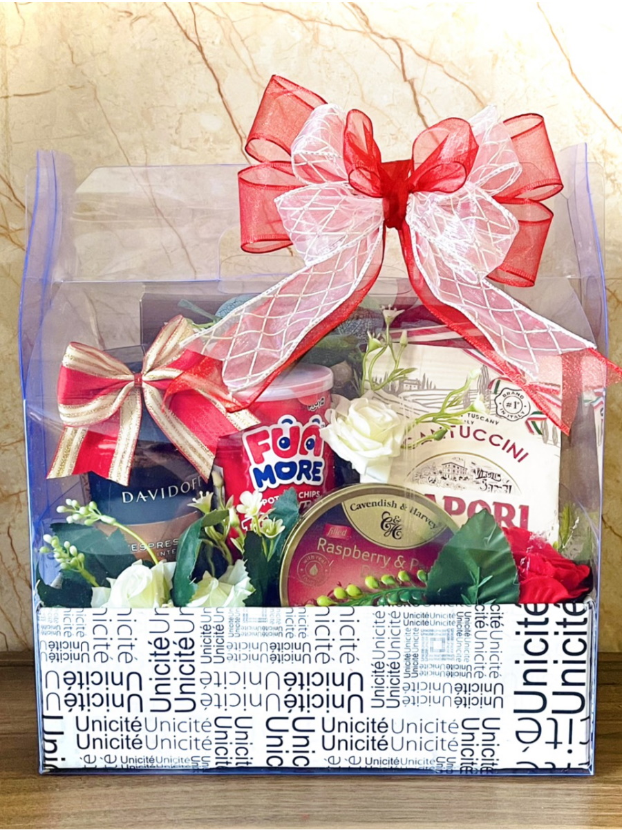 Trải nghiệm phần quà tặng tuyệt đẹp với một giỏ quà hiện đại đẹp mắt cực kỳ sang trọng trong đó bánh, kẹo, mứt, cà phê đều được chọn từ các thương hiệu cao cấp, uy tín. Tất cả đều được chọn lọc cẩn thận kỹ lưỡng và kiểm soát chặt chẽ về nguồn gốc xuất xứ. Điều đó kết hợp tạo nên một món quà tuyệt vời!