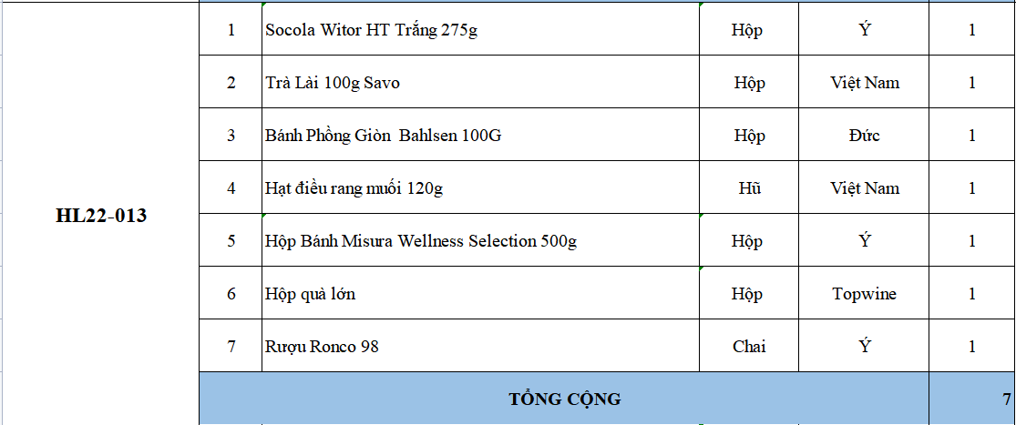Các thành phần bao gồm: bánh kẹo, trà, cà phê, mứt, giỏ quà, hộp quà, nơ, ruy băng & rượu trong phần quà tặng đôi khi có thể bán hết hàng mà chúng tôi chưa kịp cập nhật. Nếu điều này xảy ra, chúng tôi sẽ xác nhận với bạn và luôn thay thế bằng các sản phẩm có giá trị tương đương hoặc lớn hơn.
