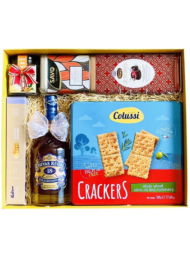 Loại rượu vang này kết hợp hoàn hảo với một giỏ quà hiện đại, đẹp mắt cực kỳ sang trọng trong đó bánh, kẹo, mứt, cà phê đều được chọn từ các thương hiệu cao cấp, uy tín. Các loại hạt được dùng trong phần quà là các hạt organic đầy đủ dinh dưỡng, lành mạnh và đảm bảo an toàn cho sức khỏe. Tất cả đều được chọn lọc cẩn thận kỹ lưỡng và kiểm soát chặt chẽ về nguồn gốc xuất xứ. Điều đó kết hợp tạo nên một món quà tuyệt vời!