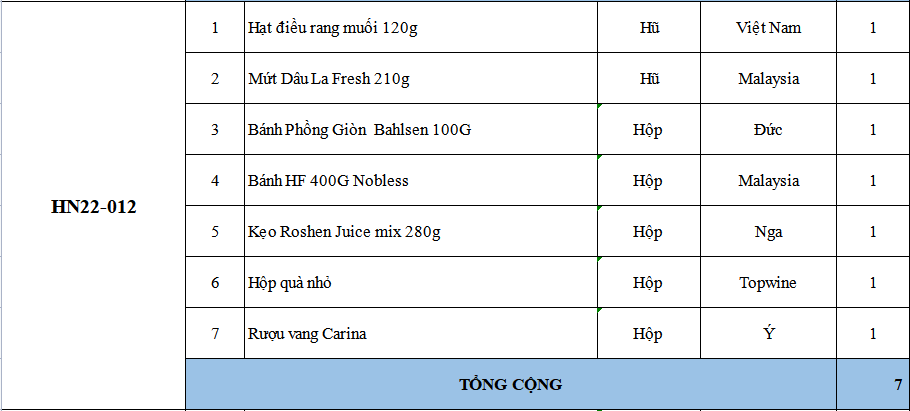 Các thành phần bao gồm: bánh kẹo, trà, cà phê, mứt, giỏ quà, hộp quà, nơ, ruy băng & rượu trong phần quà tặng đôi khi có thể bán hết hàng mà chúng tôi chưa kịp cập nhật. Nếu điều này xảy ra, chúng tôi sẽ xác nhận với bạn và luôn thay thế bằng các sản phẩm có giá trị tương đương hoặc lớn hơn.
