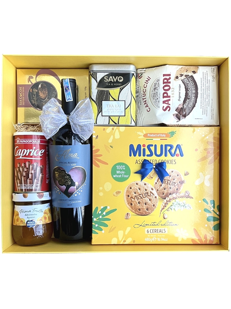 Loại rượu vang này kết hợp hoàn hảo với một giỏ quà hiện đại đẹp mắt cực kỳ sang trọng trong đó bánh, kẹo, mứt, cà phê đều được chọn từ các thương hiệu cao cấp, uy tín. Các loại hạt được dùng trong phần quà là các hạt organic đầy đủ dinh dưỡng, lành mạnh và đảm bảo an toàn cho sức khỏe. Tất cả đều được chọn lọc cẩn thận kỹ lưỡng và kiểm soát chặt chẽ về nguồn gốc xuất xứ. Điều đó kết hợp tạo nên một món quà tuyệt vời!