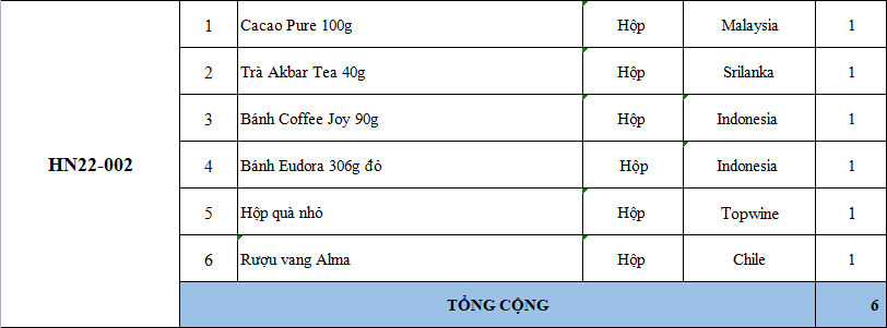 Các thành phần bao gồm: bánh kẹo, trà, cà phê, mứt, giỏ quà, hộp quà, nơ, ruy băng & rượu trong phần quà tặng đôi khi có thể bán hết hàng mà chúng tôi chưa kịp cập nhật. Nếu điều này xảy ra, chúng tôi sẽ xác nhận với bạn và luôn thay thế bằng các sản phẩm có giá trị tương đương hoặc lớn hơn.