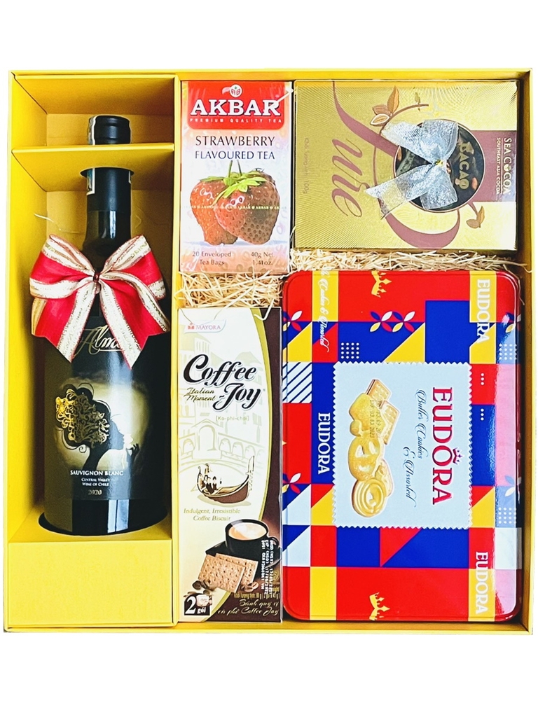 Loại rượu vang này kết hợp hoàn hảo với một giỏ quà hiện đại đẹp mắt cực kỳ sang trọng trong đó bánh, kẹo, cà phê đều được chọn từ các thương hiệu cao cấp, uy tín. Các loại hạt được dùng trong phần quà là các hạt organic đầy đủ dinh dưỡng, lành mạnh và đảm bảo an toàn cho sức khỏe. Tất cả đều được chọn lọc cẩn thận kỹ lưỡng và kiểm soát chặt chẽ về nguồn gốc xuất xứ. Điều đó kết hợp tạo nên một món quà tuyệt vời!