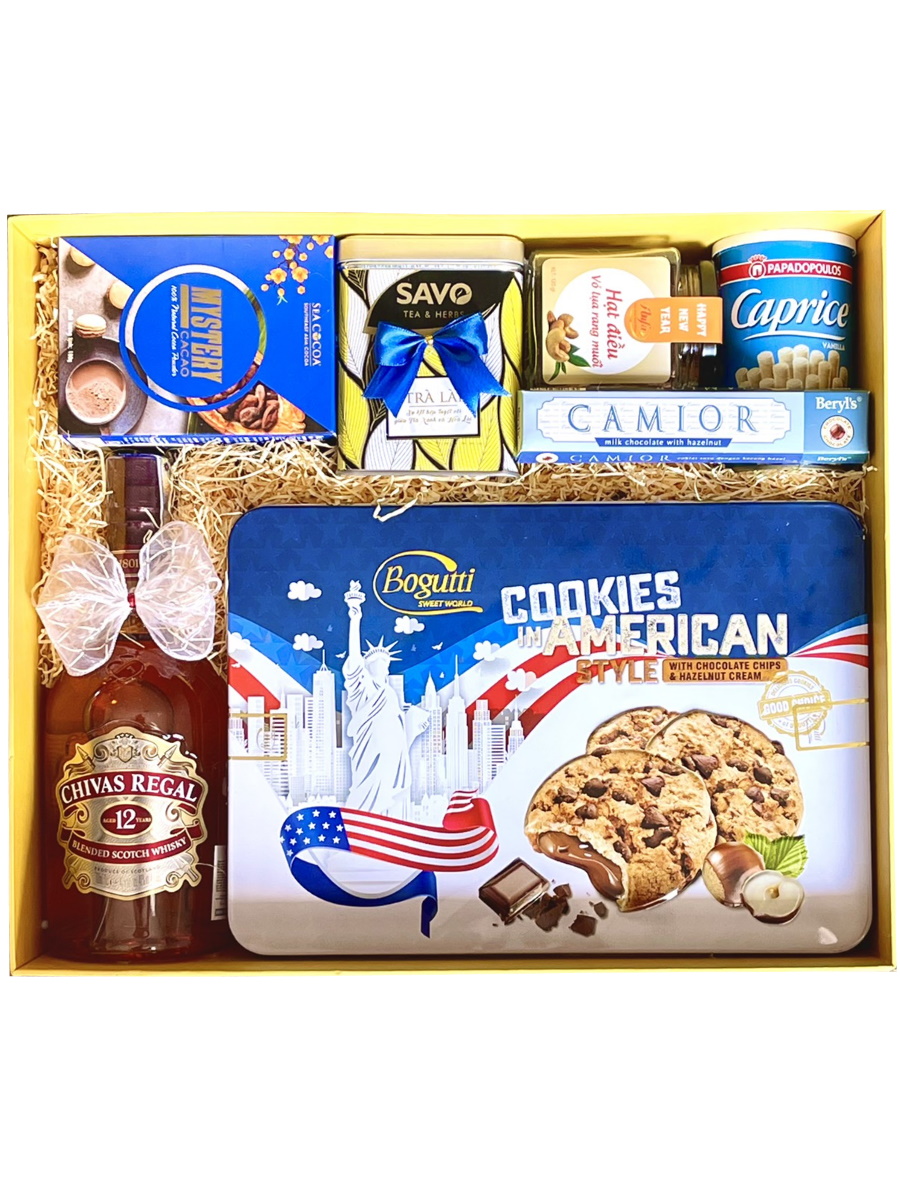 Trải nghiệm phần quà tặng rượu vang tuyệt đẹp này bao gồm chai rượu Chivas Regal 12 Năm.