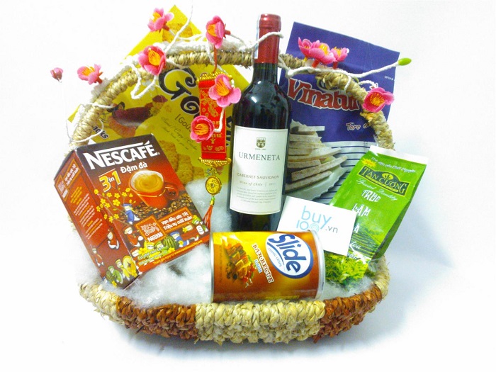 Còn các phần cao cấp hơn các doanh nghiệp lại chôn các loại hộp gỗ, hộp nhựa cách tân vừa cao cấp vừa đơn giản, thành phần bên trong chủ yếu là một chai rượu ngoại cao cấp, các phần bánh kẹo, trà, cà phê …100% là hàng ngoại nhập.